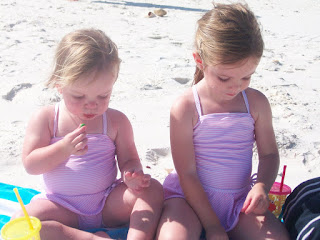 ...from A MONTH ago! So, if you have been a friend of mine for any length of time, you have gotten your share of texts, phone calls, or e-mails from me saying, "my phone broke/ got lost/ got run over...please send me your phone number again!" This seems to be the story of my life. Something is always getting lost or broken when it is in my possession. Most recently, my e-mail. I am one of those sad people who fell for the (blatantly obvious) schemes, gave away my password to my e-mail, and lost every contact in the process. Quite coincidentally at the same time, the memory card for my camera lost it's, well, it's memory. Out of the 170 pictures that I took from our amazing vacation to the beach, only about 25 were salvagable. So between the e-mail, the camera, our poor dilapidated house with blue-tarped roof, hanging gutters and falling siding waiting to be repaired from the fallen tree, I have taken a bit of a vacation from technology. I've been enjoying, instead, the simpler and more predictable parts of my life that this summer season has offered: sprinklers, cook-outs with friends, swimming pools, puppet shows, sidewalk chalk, popsicles, playgrounds... none of it has been documented by a camera or sent to waiting grandparents by e-mail (sorry Nana and Papa!) but none of it has broken- which in-and-of itself seems to be a victory! I suppose I'll buy a new memory card this weekend, and I now have a new e-mail address. We should be choosing a contractor to start fixing our poor house this week, and the tree has finally been removed. But I've been reminded that you are truly a blessed person when it's only the "things" surrounding you that are broken, and the people that you surround yourself with that keep you filled! And my cup 'runneth over'.
